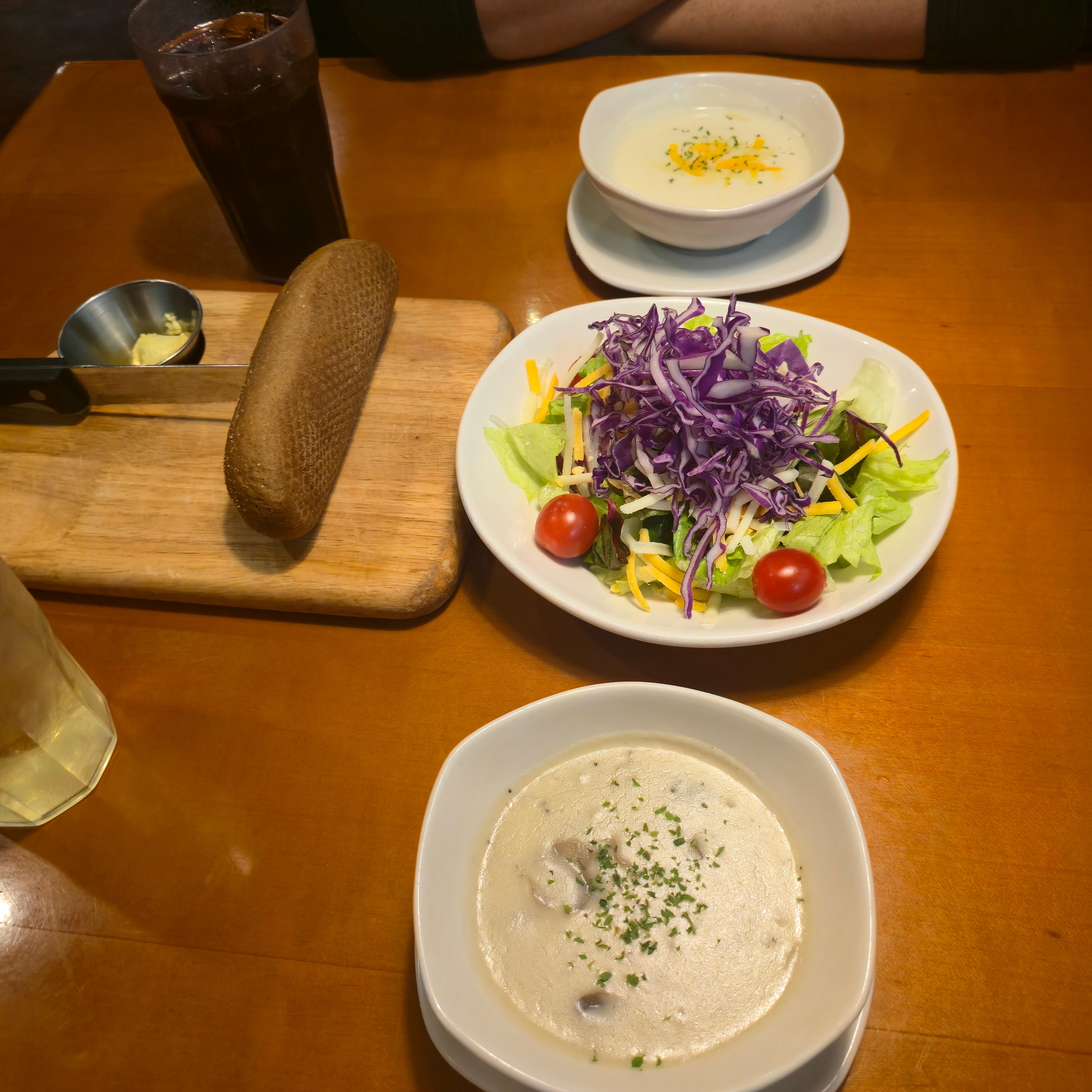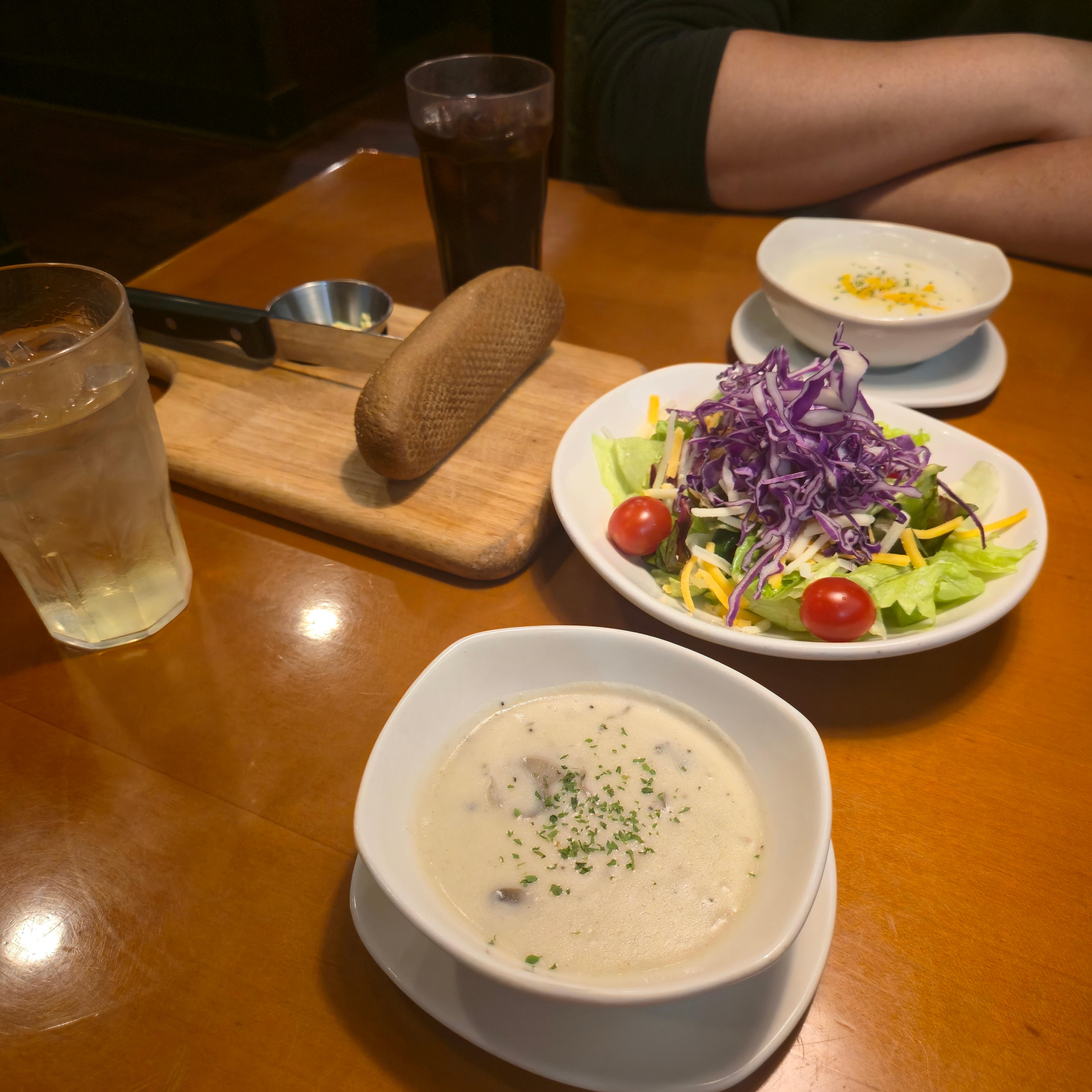 저는 양송이 스프, 짝꿍이는 치즈 스프를 시켰어요.