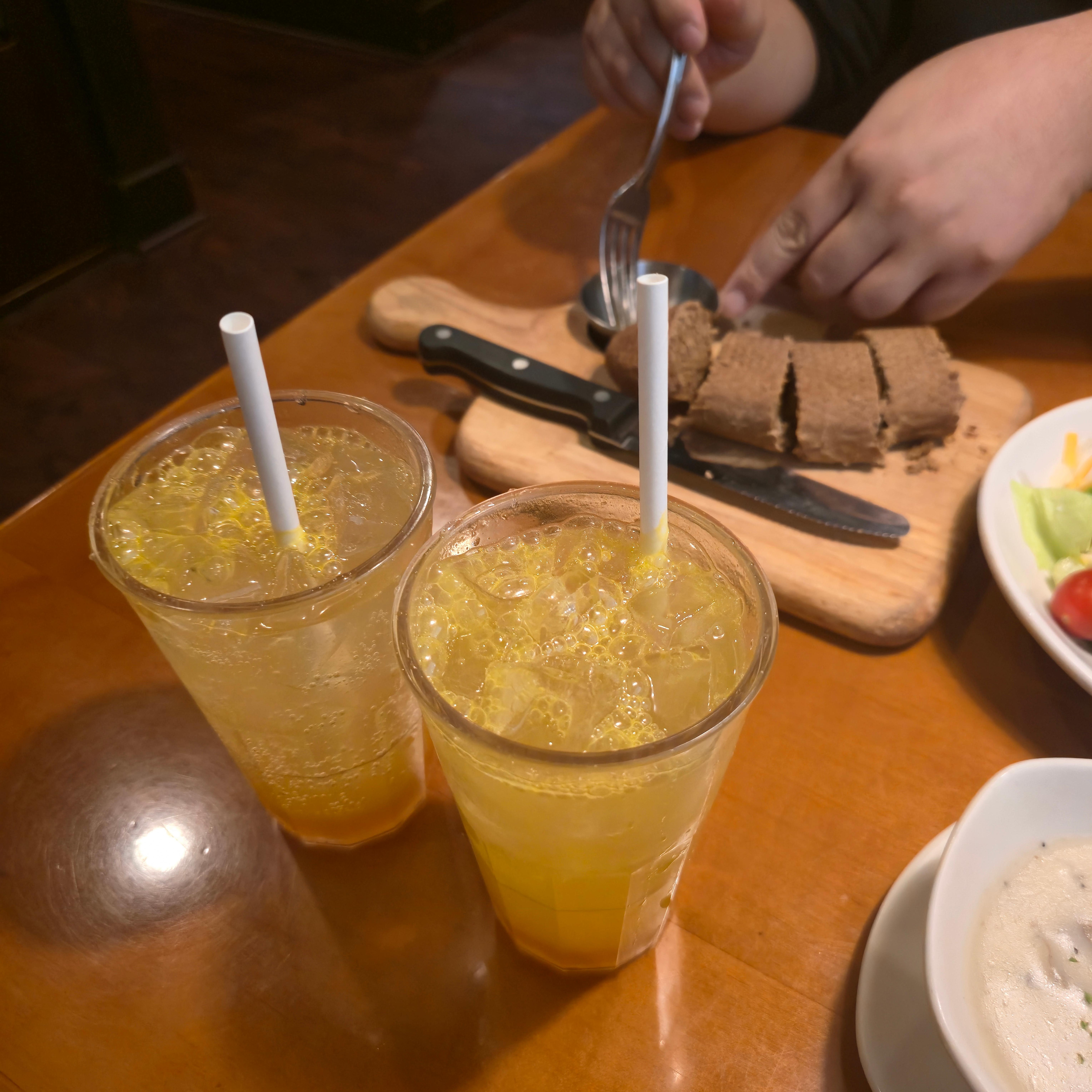 저희는 둘 다 망고에이드를 시켰어요.