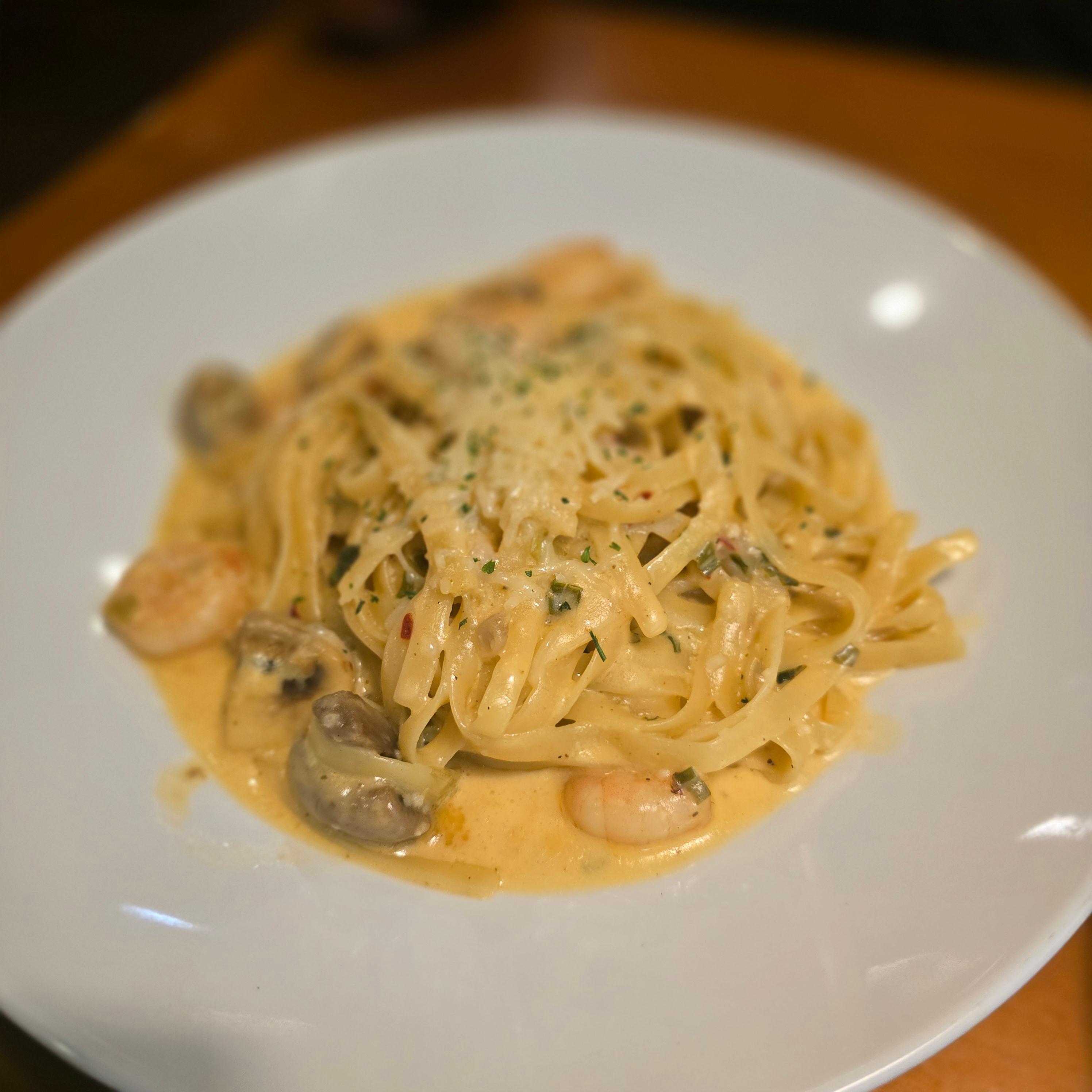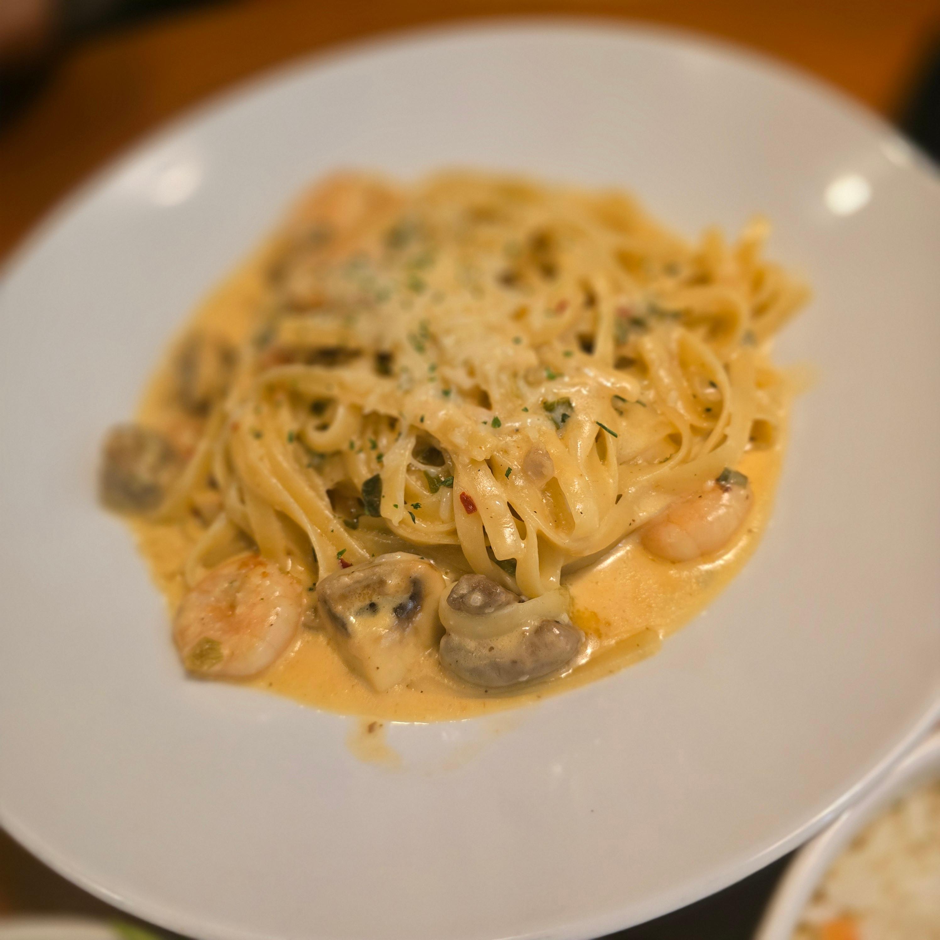 맵찔이인 저를 배려하여 짝꿍이가 일반 투움바 파스타로 주문하였어용..(ㅜㅜ)