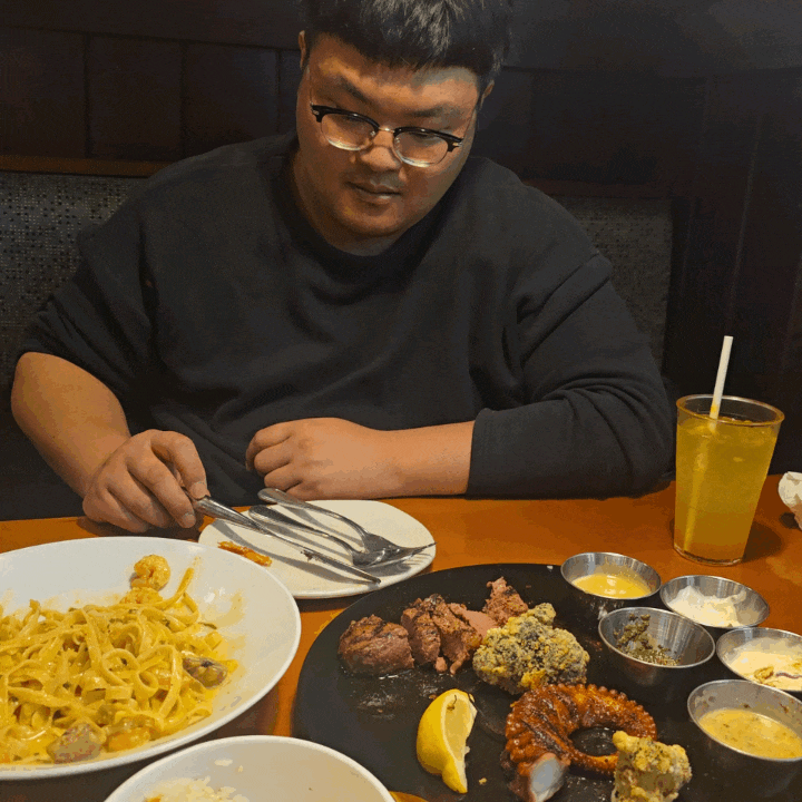원래는 스파이시 투움바 파스타 시키려고 했는데, 직원 분께 여쭤보니 맵기가 불닭볶음면 같다고 하여
